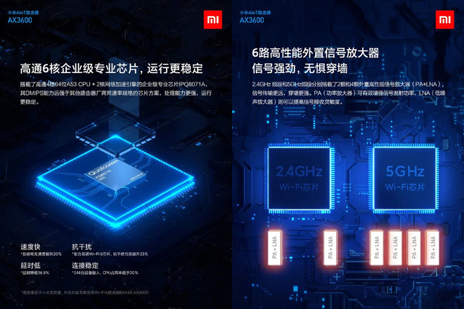 Mi AIoT Router AX3600 là bộ định tuyến (router) cao cấp được trang bị vi xử lý IPQ8071A của Qualcomm, bao gồm 4 lõi Cortex-A53 và có xung nhịp 1.0GHz. Ngoài ra, nó cũng đi kèm với 512MB RAM và 256MB bộ nhớ trong, bộ xử lý thần kinh chuyên dụng (NPU) lõi kép 1.7GHz để tối ưu hóa tốc độ mạng của người dùng.